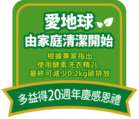 | 恭賀~「多益得20週年慶感恩禮」推出四款酵素洗衣精系列產品環保、健康、高效組合喔! |